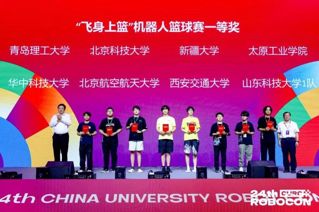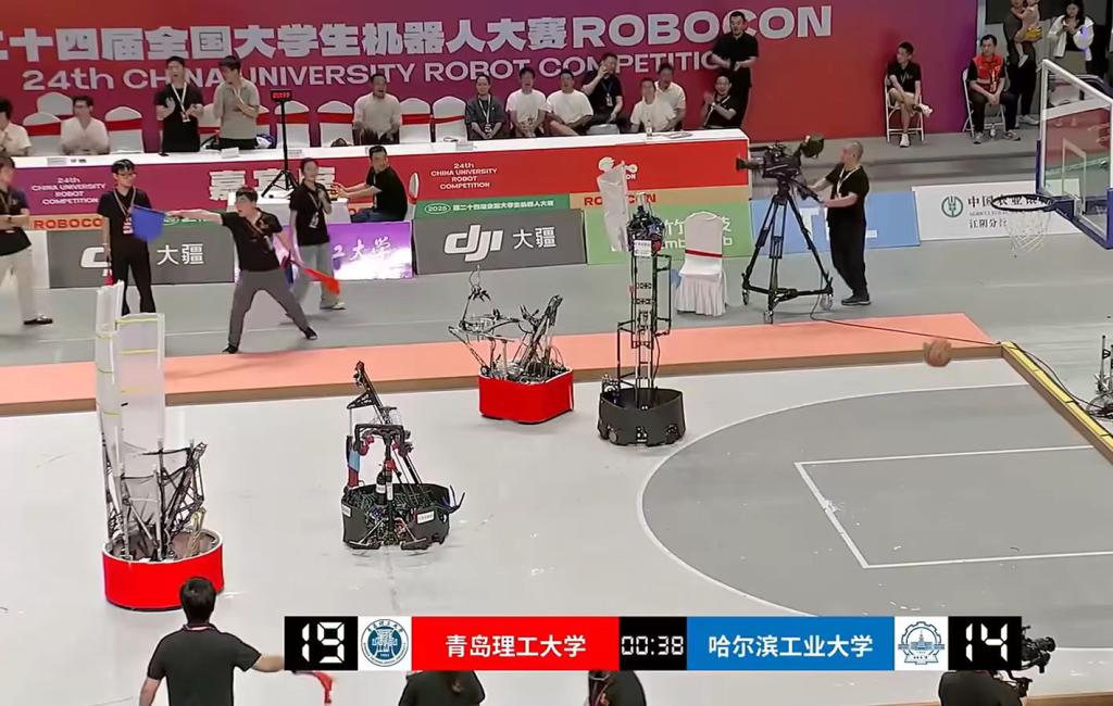 本届ROBOCON机器人大赛以“飞身上篮”为主题,借鉴篮球运动元素,设置运球突破、精准投篮等任务,全面考察机器人的机动性、团队战术协同与工程创新水平。MG冰球突破官网沧溟机器人战队在王飞、官源林、赵娟和刘松年等教师指导下,参加了“飞身上篮”2v2项目的角逐。比赛中,团队配合默契,综合应用多学科知识技术,在指导教师沉着指挥下,队员各司其职、稳定发挥,接连战胜哈尔滨工业大学、东北大学、北京科技大学、中国石油大学(北京)等劲旅,最终斩获赛区四强、全国八强及全国一等奖。