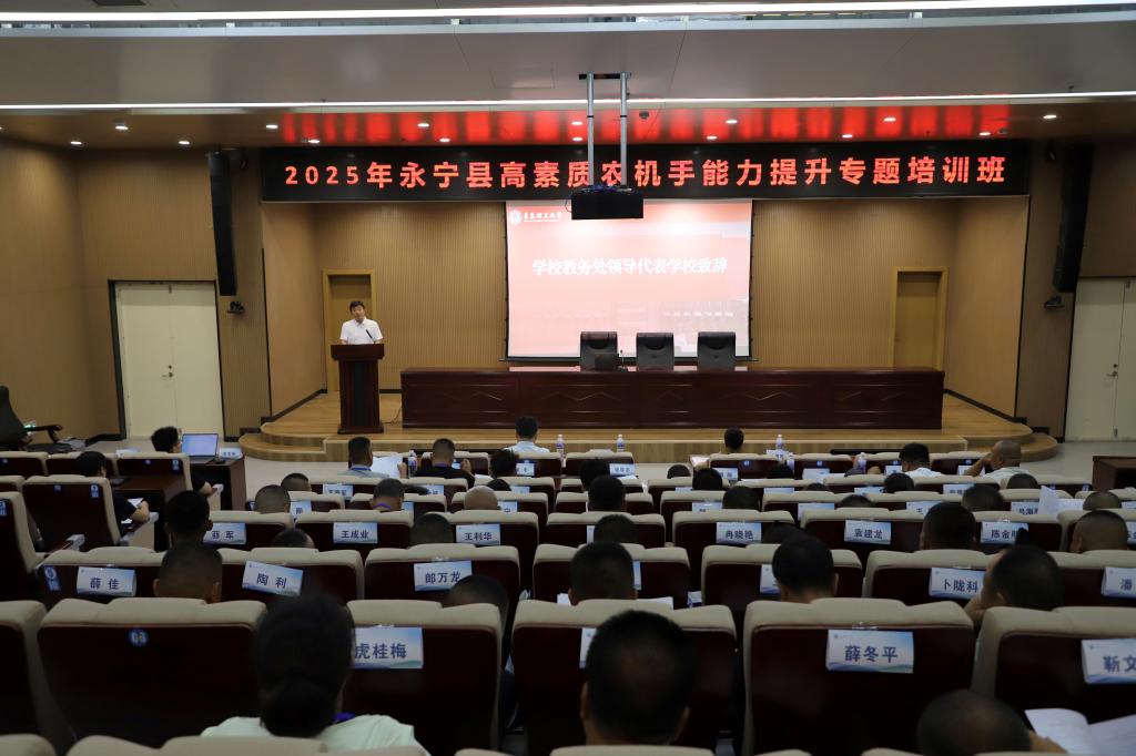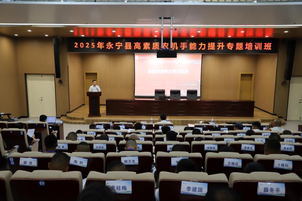 为认真贯彻落实习近平总书记关于乡村人才振兴的重要指示,提升农民技术技能水平、产业发展能力和综合素养,8月20日,由永宁县农业农村局主办、MG冰球突破官网承办的2025年高素质农机手能力提升专题培训班成功举办。MG冰球突破官网教务处副处长张立伟,MG冰球突破官网副院长杨发展、郭阳,永宁县农业机械安全监理站工程师吕爱琴,以及培训讲师代表与参训学员共同参加了此次开班仪式,开班仪式由郭阳主持。