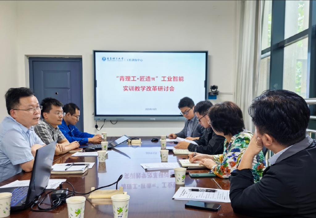 为持续推动人工智能赋能本科实践教学模式改革,10月11日,MG冰球突破官网(工程训练中心)组织召开了“青理工·匠造π”工业智能实训教学改革研讨会。教务处副处长杨勇、朱晓阳,资产与实验室管理处副处长范若联,信息化建设与管理处副处长李金海应邀到会指导。会议由MG冰球突破官网副院长杨发展主持,项目组主要成员参会。