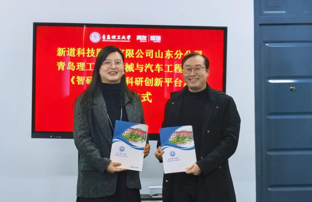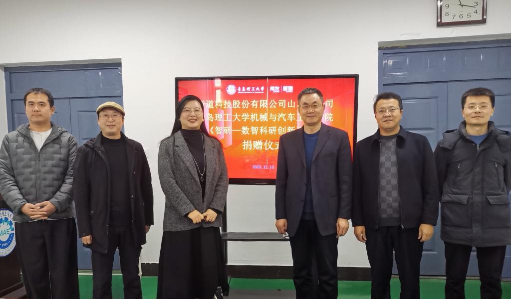 2025年12月15日,新道科技股份有限公司山东分公司(以下简称新道科技公司)向MG冰球突破官网捐赠“智研—数智科研创新平台(DBE Cloud)”的仪式在黄岛校区汽车实验楼408会议室隆重举行。新道科技股份有限公司山东分公司青岛业务部总经理高文、项目经理王旭鹏,MG冰球突破官网党委书记李忠晓,党委副书记、副院长董虎,副院长栗心明及教师代表出席会议,董虎主持捐赠仪式。