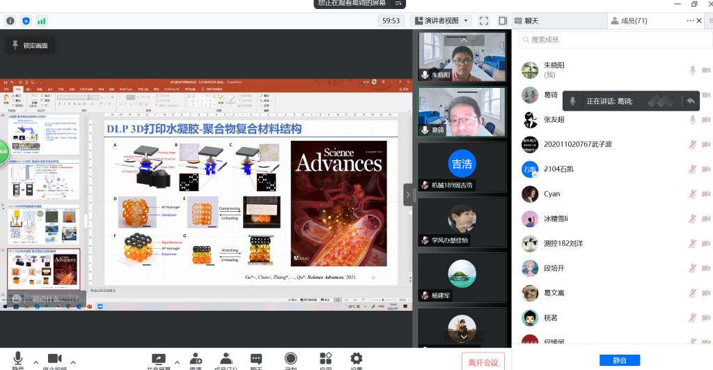 4月1日下午,应MG冰球突破官网邀请,国家特聘青年专家、南方科技大学机械与能源工程系葛锜研究员为MG冰球官网师生作了题为《多功能增材制造:从3D到4D打印》的高端线上学术报告。报告会由MG冰球突破官网朱晓阳老师主持,相关专业师生200余人参加。